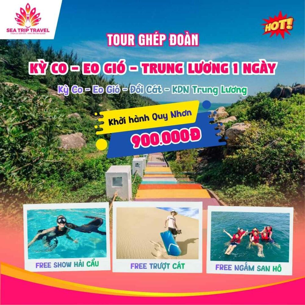 Khám phá thiên đường biển đảo Quy Nhơn với Tour Kỳ Co Eo Gió 1 ngày. Hành trình đưa bạn đến với Bãi tắm Kỳ Co – nơi sở hữu làn nước hai màu xanh trong vắt và dạo bước trên Eo Gió – điểm ngắm hoàng hôn đẹp nhất Việt Nam. Cùng Sea Trip Travel tận hưởng một ngày hè rực rỡ với dịch vụ chuyên nghiệp và lịch trình tối ưu.